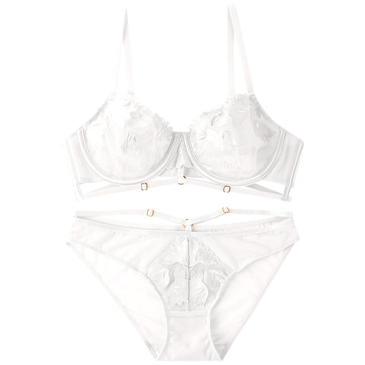 Women's Fashion Simple Weight Artworks Embroidery Mesh Stitching Underwear Four-piece Set